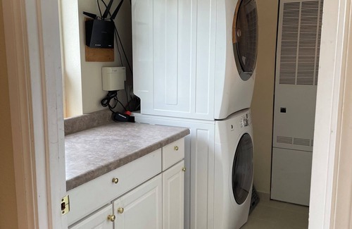 Este alojamiento de 3 dormitorios y 2 baños cuenta con una zona para barbacoas y chimenea. Disfruta del wifi y de la televisión. Además, dispone de una bañera de hidromasaje, junto con toallas, champú y jabón. Prepara una comida casera en la cocina, equipada con horno, placa de cocina y frigorífico, además de cafetera y tetera, microondas y utensilios de cocina. Y gracias a la lavadora y la secadora, podrás viajar con poco equipaje. Otras comodidades incluyen ropa de cama y calefacción.