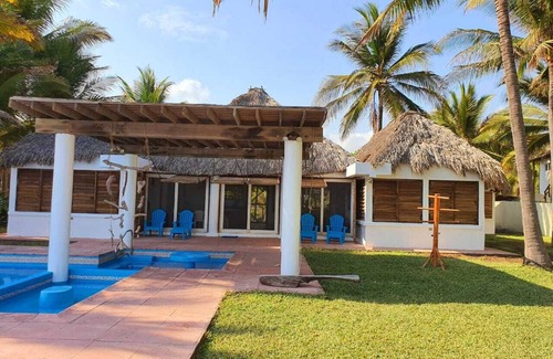 Esta casa de vacaciones de 4 dormitorios y 4 baños está ubicado en Monterrico, una ubicación ideal para explorar los alrededores. A los amantes de la naturaleza y el aire libre les encantará estar a 39min en coche de Playa de Puerto San José y a 28min de Playa de Monterrico. Si quieres explorar la zona, estarás a 11min en coche de Estación biológica El Banco y a 5min en coche de Museo del Mar.
