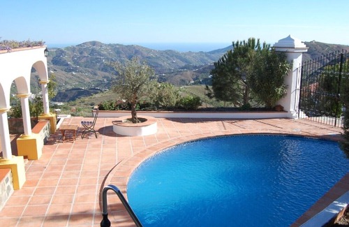 Nuestra casa unifamiliar está rodeada de viñedos y almendros. Desde la gran terraza se tiene una magnífica vista del mar, las montañas y pueblos blancos. La paz y la naturaleza absoluta, no hay turismo de masas. Nuestra casa está totalmente amueblado y decorado. La gran sala de estar con chimenea está separado por una barra de la cocina. En el jardín de invierno que tiene una hermosa vista y el viento o la protección solar como sea necesario. Alrededor de la casa hay desde el amanecer hasta la puesta del sol siempre un lugar agradable. En la piscina - con posibilidad de control parental - justo al lado de la terraza se puede enfriar todo el día.