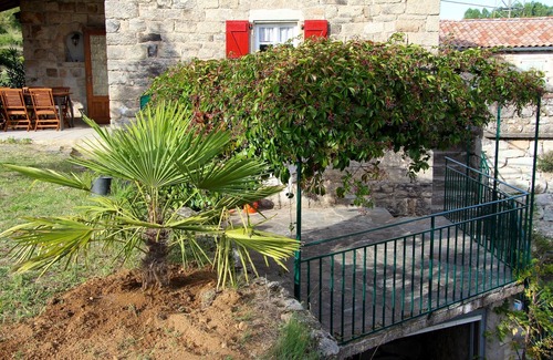 Hermosa casa Ardèche del siglo XIX, totalmente restaurada, con todas las comodidades (baño privado - renovado en 2015 - ducha separada, secador de toallas, lavadora, lavadora, microondas, cafetera , tostadora, hervidor de agua, TV de pantalla plana, reproductor de CD chimenea), tres terrazas, dos (dos mesas al aire libre de interior, una teca para 8 cubierta con tumbonas y sillas), garaje cerrado, jardín adjunto y árboles, tierra de 1300 metros cuadrados con media vuelta y posibilidad de acampar. Todo, en el centro de un pueblo encantador, a 8 minutos a pie de dos ríos (con zonas de baño), y 8 minutos en coche de las tiendas (y Chambonas Les Vans).