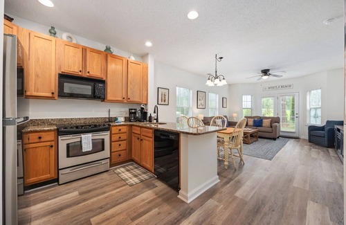 Tee off in style at this spacious 2-bedroom, 2-bath condo at Legends Golf Resort. Sleeps 8 with four queen beds. Just 15 mins to the beach and airport. Enjoy access to 3 golf courses, a pool, tennis & basketball courts, pub, and clubhouse. Pet-friendly and fully equipped for comfort. Whether you're chasing birdies or beach days, this is the best of both worlds!