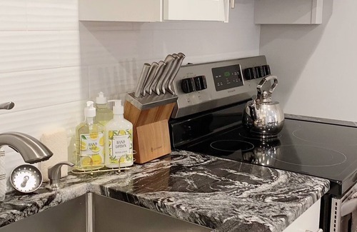 Este alojamiento de 1 dormitorio y 1 baño cuenta con una zona para barbacoas, aire acondicionado, escritorio y impresoras. El cuarto de baño incluye un secador de pelo, toallas y papel higiénico. La cocina está equipada con horno, placa de cocina y frigorífico, además de cafetera y tetera, máquina de hielo y microondas. Y no tendrás que llevarte ropa de más, porque podrás aprovechar la lavadora y la secadora.