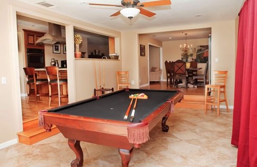 La cocina está equipada con nuevos gabinetes con encimera de granito. Los pisos de madera se encuentran en todas las zonas de estar común con alfombra en los dormitorios. La casa es de aproximadamente 2,400 pies cuadrados de ambiente cómodo usted está seguro de disfrutar. Abierto y aireado. Cuando no está de gira bodegas o cenar en restaurantes de clase mundial del valle disfrutar de esta maravillosa casa tomando una tarde de natación en la piscina grande. Relájese en la sala de estar, ver la televisión en la pantalla plana de 42 "HD, acogedor junto a la chimenea de leña, o jugar al billar con sus amigos. 200 planta Cab viñedo incluido en la propiedad con la opción de la cosecha de sus propias uvas durante los meses de cosecha. Producirá cerca de 1/2 por barril. Para 8 - 2 camas de matrimonio - 1 cama de matrimonio, 1 cama de matrimonio en la sala de bonificación adjunto al garaje. Nuestra política de no fumar y no los partidos grandes se aplica estrictamente. La casa está situada en el lado Napa país aún hay vecinos que huésped debe ser considerado con.