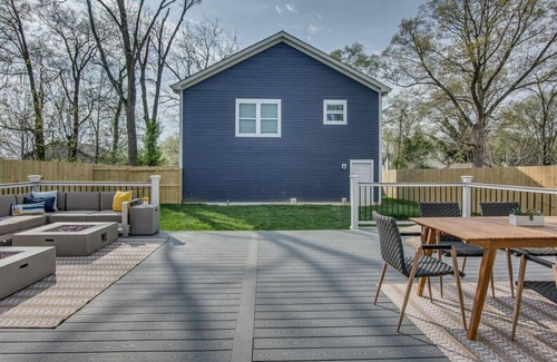 Welcome to Nashville Love, a beautifully curated home nestled conveniently near East Nashville's 5 Points. This 5-bdrm, 3.5-bath retreat blends bohemian charm with modern elegance, creating an inviting haven ideal for all. Enjoy our enchanting outdoor spaces featuring two fire pits and a luxe patio deck. We're minutes from Broadway, Music Row, and iconic Nashville attractions.