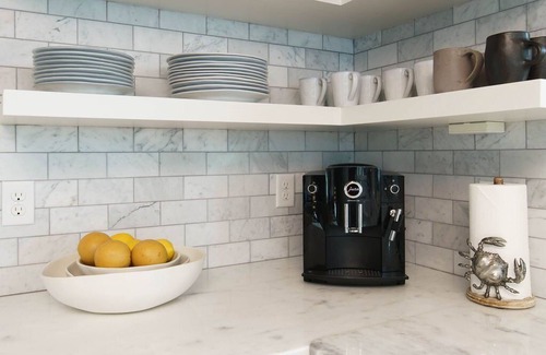 This 2-bedroom property sleeps 4 and is perfect for couples and small families Living SpacesThe welcoming living space tastefully decorated in a coastal style with lots of light comfortable sofa and fur-draped chairs boasts its own working gas fireplace flanked by built-in banquettes perfect for taking the chill off after a walk on the beach This laid-back space is perfect for family game time we ve supplied the games curling up with a good book movie night on the Smart TV or planning your next outdoor adventure Kitchen DiningThe cook in your group will appreciate the beautifully appointed chef s kitchen With its top-of-the-line European appliances including a wine fridge for your favorite vintage and full suite of Williams Sonoma utensils it s a joy to use And with its wraparound marble backsplash and solid-surface countertops beamed ceiling and elegant cabinetry it s also a pleasure to look at Enjoy your gourmet meals in the dining area just off the living room There s lots to talk about here thanks to this space s elegant cabinet of curiosities full of coastal art and natural objects as well as its custom light fixture made from salvaged Japanese floats Bedrooms BathsBedrooms are located on the 2nd floor up a flight of stairs The primary bedroom is bright and airy with king-sized bed cozily tucked into the eaves built-in dresser reading nook and closet space to store all your bags A skylight lends the room extra light Prepare for the day in the roomy en-suite bath elegantly outfitted with marble double sink and marble-tiled step-in shower The 2nd bedroom is a haven for kids and bookworms alike with its fun built-in twin beds tucked into the eaves with their own built-in bookshelves custom reading lights and skylights with their own blackout curtains to ensure a good sleep Find a 2nd family bath on this floor with full tub marble sink skylight and wraparound marble tiling A 3rd bathroom is located on the main ground floor Outdoor AmenitiesGrill out on the gas grill and relax on the upper deck with breathtaking peek-a-boo views of the ocean Other Things To NoteNo pets smoking or events Outside space is on an incline with areas of unlevel ground