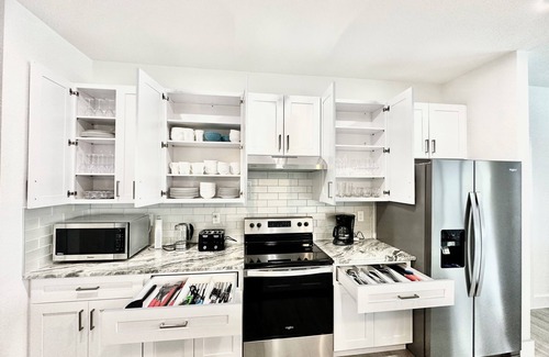 Al instalarte en este alojamiento de 5 dormitorios y 3 baños, encontrarás una zona para barbacoas y aire acondicionado. Conéctate al wifi gratis, o relájate frente a un Smart TV. El cuarto de baño incluye un secador de pelo y toallas. Prepara una comida casera en la cocina, equipada con horno, placa de cocina y frigorífico, además de cafetera y tetera, hervidor eléctrico y máquina de hielo. Y no tendrás que llevarte ropa de más, porque podrás aprovechar la lavadora y la secadora. Otras comodidades incluyen ropa de cama, una tabla de planchar, calefacción y una mesa de comedor.