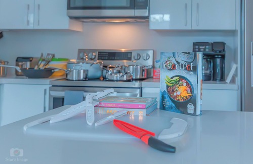 Este alojamiento de 2 dormitorios y 2 baños cuenta con una sala de estar, aire acondicionado, escritorio y dispensador de agua. Disfruta del wifi gratis, de la televisión, de los videojuegos y del reproductor de DVD. El cuarto de baño incluye un secador de pelo, toallas y papel higiénico. Prepara una comida casera en la cocina, equipada con horno, placa de cocina y frigorífico, además de cafetera y tetera, hervidor eléctrico y máquina de hielo. Y no tendrás que llevarte ropa de más, porque podrás aprovechar la lavadora y la secadora. Otras comodidades incluyen ropa de cama, una tabla de planchar, calefacción y cambio de toallas a petición.