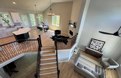 Escape to this enchanting house in picturesque Lenexa. This 4-bedroom retreat boasts 2 king beds, 1 queen bed, 1 twin bed, and 1 bunk bed, perfect for families or groups of friends. With 3 bathrooms equipped with hair dryers and showers, guests will feel right at home. An additional office space with a sofa bed provides extra comfort. Experience what Lenexa has to offer with a stay at our enchanting house.