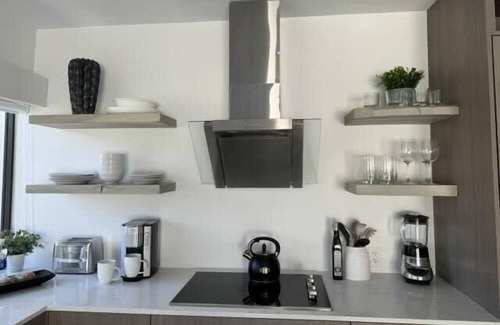 Al instalarte en este alojamiento, encontrarás una sala de estar, aire acondicionado y escritorio. El cuarto de baño incluye un secador de pelo, toallas y papel higiénico. La cocina está equipada con horno, placa de cocina y frigorífico, además de cafetera y tetera, microondas y utensilios de cocina.