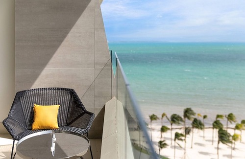 Sink into relaxation and enjoy a feeling calm enhanced by stylish décor using a nature color palette and sweeping ocean views. Contemporary design and aesthetic details featured throughout this spacious 588 sq. ft. Ocean View Junior Suite creating the perfect atmosphere for invigorating renewal and rest. Natural daylight seeps through the expansive sliding glass doors and the private balcony overlooks the resort’s tropical landscape revealing stunning ocean views. This is a family friendly resort with adult dedicated areas.