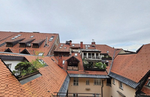 Es un espacioso dúplex. En el primer piso hay una cocina amueblada con nevera, lavavajillas, estufa y horno, rincón comedor con mesa para 6 personas, sala de estar con sofá y sofás de cuero, otro sofá cama (140 x 200 cm), escrito escritorio, salida a la terraza privada con vista a la colina del castillo y baño con ducha y retrete. Hay dos dormitorios en el segundo piso, uno tiene una cama (140 cm x 200 cm) y el otro dos individuales (90 x 200 cm). El apartamento está equipado con lavadora, televisión por cable con pantalla LCD, acceso gratuito a internet inalámbrico (Wi-Fi), teléfono y aire acondicionado. El estacionamiento privado es de aprox. A 500 m del apartamento (solo para vehículos personales que no superen el tamaño habitual de 5 m) - el precio diario es de 12 €, el precio mensual es de 120 €. Las reservas deben hacerse con anticipación.