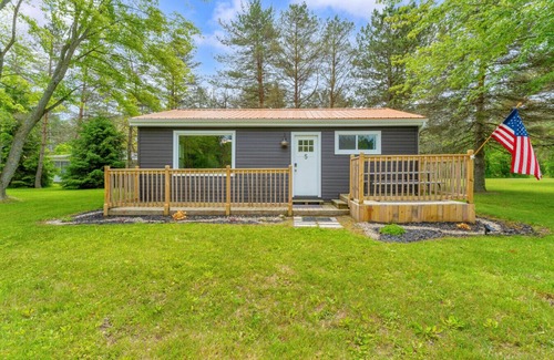 This cottage features 2 comfy bedrooms with queen beds, a clean and modern full bathroom, a full kitchen stocked for cooking, and a living area perfect for movie nights or board games. A/C and a smart TV are included, because even the lake life deserves a little tech comfort.