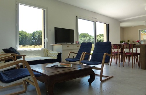 Casa de 2015, espaciosa, luminosa, tranquila y bien equipada, ubicada al final de un camino privado. El terreno está completamente cerrado y los vehículos están estacionados en la propiedad. La playa está a menos de 2 km y el pueblo de Plurien a 400m con todas sus tiendas.