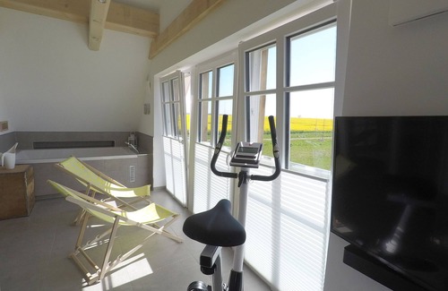 - Área de bienestar con sauna, baño de vapor, hidromasaje, ergómetro, Smart TV y una vista fantástica.