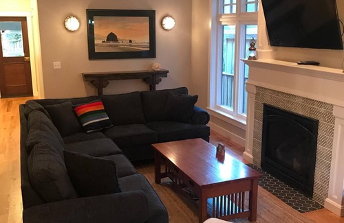 Hermosa casa de playa de estilo artesanal ubicada a 2 cuadras de la playa, al norte de Haystack Rock, y a una cuadra de Pelican Brew Pub y café Sleepy Monk. Nuevas camas y ropa de cama, un amplio sofá seccional, televisores de pantalla plana y electrodomésticos. Gran cocina principal más cocina americana en un amplio estudio sobre garaje. 2 juegos de lavadora y secadora. 2 áreas de habitaciones familiares. Amplio garaje. Camas para 13. (La ocupación es de 10 personas mayores de 2 años).