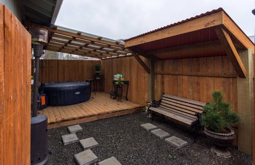Nueva casa de 3 dormitorios / 2 baños. Ubicado en un vecindario tranquilo, pero a solo minutos de la I-5. Su espacio limpio y privado viene con una cocina completa y nuevas camas queen en cada habitación. Cada habitación contiene un televisor montado con Netflix, Amazon Prime, Youtube TV y más. Cada habitación también incluye su propio refrigerador y microondas. WiFi gratis, por supuesto. Gran televisor de pantalla plana en una sala de estar común con calefacción y aire acondicionado controlados por una nueva mini división sin ductos. Estacionamiento gratis. Bañera de hidromasaje inflable para 6 personas en un espacio privado cercado. ¡Café Keurig también!