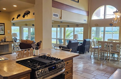 Afuera tienes mucho espacio. El malecón tiene más de 500 pies de largo con muchos lugares excelentes para pasar el rato. Puedes buscar manatíes, delfines y otras especies marinas. También hay aves rapaces que a veces se pueden observar junto con muchas otras aves. La propiedad está ajardinada con muchas flores, plantas, palmeras, plátanos y tilos. ¡Una de nuestras actividades favoritas es llevar una silla de jardín al punto norte y relajarse de una manera especial!