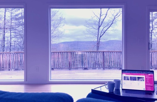 Chalet tipo A con marco, con total privacidad y hermosas vistas a la montaña. Ubicado en 40 acres, ventanas de piso a techo, cubierta envolvente con una parrilla, mesa y sillas. No puedes ver ninguna otra casa y ellos no pueden verte a ti. Camino sinuoso de 3/4 de milla de largo. 20 min a Butternet Ski 24 min a Catamount Ski 10-15 min a restaurantes y tiendas Gran espacio al aire libre. Enorme cubierta. 2 grandes televisores con Direct TV, Netflix, Amazon. Wifi en todo. Bañera de hidromasaje. Senderos para caminatas en la propiedad.
