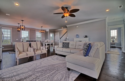 ¡Una cálida ciudad costera del sur VIBE te da la bienvenida en el momento en que llegas! ¡ESTE ALQUILER DE LUJO tiene todas las comodidades que necesitará para unas vacaciones excepcionales! NUEVA CONSTRUCCIÓN CON TODOS LOS MUEBLES NUEVOS - Casa de playa elevada de 5 habitaciones, 4 1/2 baños, ubicada DIRECTAMENTE A TRAVÉS DE LA CALLE DESDE EL OCÉANO ATLÁNTICO, EN UN CRUCERO DE MAREAS CON PISCINA PRIVADA CON VISTAS. ¡Ven a experimentar lo mejor de ambos mundos y disfruta de unas vacaciones relajantes con IMPRESIONANTES VISTAS AL AGUA DESDE CADA HABITACIÓN! Disfruta de vistas panorámicas sin obstáculos mientras disfrutas del exuberante paisaje marino y la hermosa vida salvaje. ¡Venga a relajarse, relajarse y divertirse! Esta casa tiene mucho que ofrecer a los vacacionistas, desde amantes de la playa y surfistas hasta pescadores, pescadores de cangrejos y entusiastas del agua. Disfrute de su propio muelle privado, tome el sol y nade en la hermosa piscina de agua salada en el interior o pase el día en kayak, paseos en bote y paddleboarding justo afuera de su puerta trasera. Esta casa se completa con una COCINA TOTALMENTE EQUIPADA Y TODAS LAS ROPAS DE CAMA Y LAS TOALLAS DE BAÑO ESTÁN INCLUIDAS EN LA TARIFA SEMANAL. Hay toneladas de espacio de vida al aire libre, incluyendo terrazas de varios niveles y área de patio. ¡Hay un ESTACIONAMIENTO AMPLIO PARA 6+ COCHES y espacio adicional para que guardes el remolque de tu bote, el equipo de playa y los juguetes! Hay 2 PASAJES CONVENIENTES DE ACCESO A LA PLAYA al otro lado de la calle: ¡un paseo rápido por el camino de entrada y usted está en el océano! SILLAS DE PLAYA COMPLEMENTARIAS, CARRO DE PLAYA, JUGUETES DE ARENA, ENFRIADORES Y PARRILLA DE CARBÓN se proporcionan para los huéspedes. First Floor Master está equipado con una cama King y una gran ducha con piedra natural y azulejos. También hay una gran suite principal en el segundo piso con baño completo y acceso al área de la cubierta superior. 2 habitaciones grandes adicionales con camas Queen, una con baño privado completo y la otra comparte un baño jack-n-jill con la suite con literas. Esta casa vive grande y tendrá capacidad para 14 - max 10 adultos! ¡Puede lanzar su bote a través del embarcadero público y atracar en la casa durante su estadía o simplemente disfrutar de la pesca, la pesca de cangrejos y el camarón en el muelle!