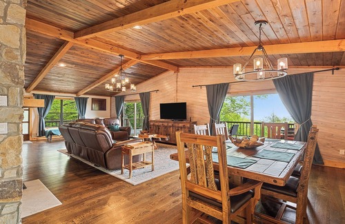 VISTAS, VISTAS, VISTAS !!! ¡Casi garantizamos la MEJOR vista en Maggie Valley! ¡Disfruta de Serenity, Seclusion y Massive Mountain VIEWS que abarcan desde el amanecer hasta el atardecer a más de 5,000 pies sobre el nivel del mar, exponiendo SIETE crestas al horizonte! ¡GUAUU! Cocina y baños completamente actualizados con superficies sólidas de lujo, pisos de madera, techos con vigas. Sala de juegos con mesa de billar, gran terraza cubierta con chimenea de gas al aire libre y mucho más. ¡No querrás irte! Tenga en cuenta que el tercer dormitorio (literas) forma parte del espacio abierto del sótano. ¡POLÍTICA ESTRICTA PARA NO FUMADORES APLICADA EN ESTA PROPIEDAD!