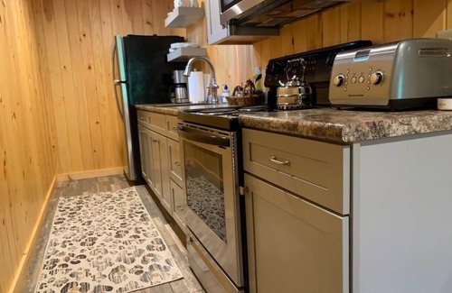 El apartamento estudio ubicado en el nivel inferior de una hermosa y nueva casa de troncos ofrece privacidad en un ambiente tranquilo. Las acomodaciones (todas nuevas / limpias) incluyen una cama tamaño queen, comedor, wi-fi, TV de pantalla plana (50 "), cocina completa con todos los electrodomésticos necesarios, utensilios de cocina / vajilla, y 1 baño con ropa de cama y toallas. Hay estacionamiento para dos vehículos y el acceso es a través de una entrada privada cubierta, mantenida 24/7.