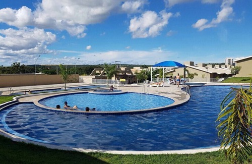 Casa en condominio con seguridad las 24 horas para hasta 8 personas incluidos niños. Situado a 500 metros de uno de los mejores parques acuáticos de Cladas Novas. Invitaciones especiales de descuento para el acceso al parque por nuestros huéspedes Casa amueblada con suite + 2 habitaciones con aire acondicionado, sala, comedor para 8 personas, cocina con utensilios y electrodomésticos. Servicio de mucama. Área de recreación con cancha, 4 piscinas y jacuzzis con calefacción central.