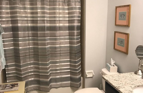 Cama king size en el dormitorio principal con baño principal y vestidor. Habitación principal equipada con TV de 32 pulgadas. El segundo dormitorio tiene 2 camas gemelas y un televisor de pantalla plana de 42 pulgadas. El estudio tiene un sofá cama queen size extraíble. La casa también incluye un segundo baño completo.