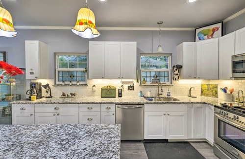 ¡NUEVO! Cottage w / Porche ~ 3 Mi a la Universidad de Baylor! Se encuentra en Waco. ¡NUEVO! Cottage w / Porche ~ 3 Mi a la Universidad de Baylor! ofrece alojamiento, con Niño amigable, Cocina, Estacionamiento, Entre otras comodidades. Estas características Cabaña Niño amigable, Cocina, Estacionamiento, Para que su estadía sea cómoda.