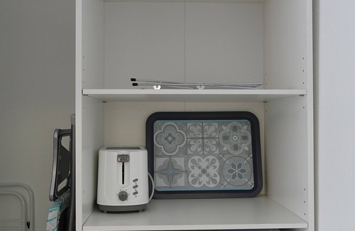 -> 1 rincón cocina totalmente equipada: microondas, cafetera, tostadora, placa de inducción, platos, productos básicos (azúcar, aceite, vinagre, sal, etc.)