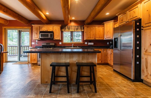 ¡Pase sus vacaciones en el Glaciar Oeste al estilo del lago en esta cabaña rústica y de alto nivel con todas las ventajas! No importa la época del año, siempre se mantendrá cómodo junto a la chimenea de leña y la chimenea al aire libre en la cubierta envolvente. Prepare deliciosas comidas con la parrilla a gas y la cocina completa con electrodomésticos de acero inoxidable, y sumérjase en las maravillosas vistas del bosque, las montañas y el lago desde toda la casa.