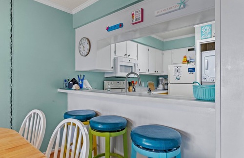 Este condominio de 2 habitaciones con 2 baños con cocina completa tiene todo lo que necesita. El océano está a unos pasos; La piscina al aire libre con tobogán de agua y la bañera de hidromasaje también están a pocos pasos y listas para hacer que sus recuerdos de playa Vista perfecta de la piscina para que pueda disfrutar de la cubierta trasera mientras observa a los niños nadar o deslizarse.