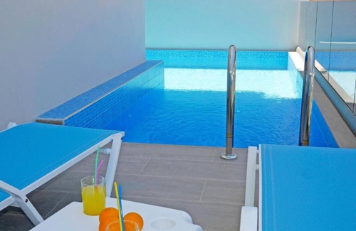 El apartamento comparte una piscina común con sus apartamentos gemelos y tiene muebles separados con sillas largas y áreas de relajación para todos los apartamentos. La piscina cubre todas las necesidades, el tiempo suficiente para hacer ejercicio y nadar cómodo, así como para divertirse y jugar.