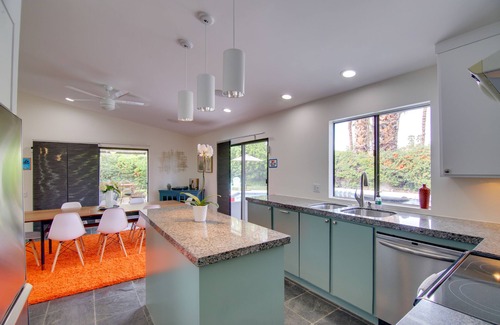 ¡Experimente el encanto de Palm Springs cuando se aloje en esta casa de alquiler vacacional! La casa única cuenta con 4 dormitorios, 2 baños y un inmejorable espacio al aire libre con piscina, bañera de hidromasaje, patio cubierto y área de comedor. En el interior, disfrutará de comodidades como una chimenea, una mesa de billar y una mesa de comedor de estilo familiar. Cuando no esté descansando junto a la piscina o en el patio de la suite principal, disfrute jugando al golf en el Classic Club, visite el Museo de Arte de Palm Springs o asista a festivales.