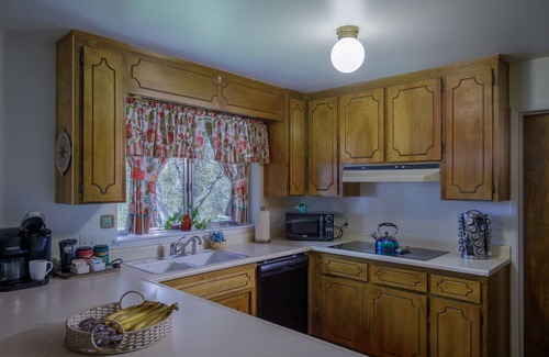 Una maravillosa casa de 3 dormitorios, 2 baños y más de 1500 pies cuadrados, decorada con muebles de montaña. Ubicado en 5 acres de bosques tranquilos y relajantes, con una hermosa vista a la montaña desde una enorme terraza.