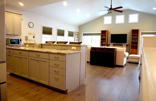 Swan's End es una casa de 2300 pies cuadrados recién construida a solo unos pasos del lago Highland durante todo el año. Tres habitaciones con baño, una gran sala, una cocina totalmente equipada y lavandería, kayaks, una canoa, tablas de paddle, área de barbacoa y una chimenea al aire libre harán que sus vacaciones sean inolvidables. La casa duerme diez con una cama king, una queen, cuatro camas individuales y un sofá cama queen. Esta área de Highland Lake es tranquila con varios residentes durante todo el año. El lago nunca está lleno de barcos o esquiadores. Tenga en cuenta que esta casa no está en el lago, ni está cerca de un área de baño dedicada. La casa está a 200 pies de la rampa para botes, que es un sitio de lanzamiento para kayaks, canoas y botes.