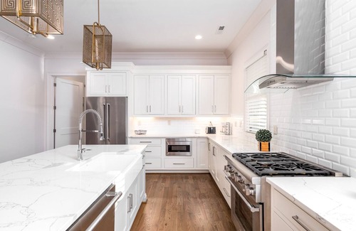 Casa de 3100 pies cuadrados, cocina para entretener con granito. Techos de 10 pies en todo. Increíble piso a techo, ventanas altas y puertas con hardware encantador. Suelos de roble macizo, baldosas de mármol Carrera y encimeras de mármol.