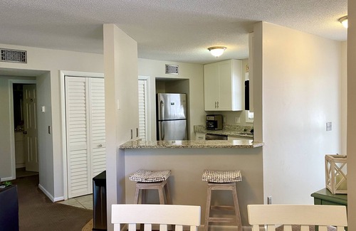 Este alojamiento de 2 dormitorios y 2 baños cuenta con una sala de estar, chimenea, aire acondicionado y escritorio. El cuarto de baño incluye un secador de pelo, toallas y papel higiénico. La cocina está equipada con horno, placa de cocina y frigorífico, además de cafetera y tetera, máquina de hielo y microondas. Podrás viajar con poco equipaje, porque tendrás una lavadora y una secadora a tu disposición.
