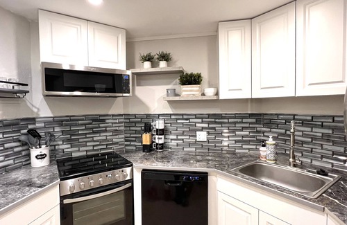 La cocina está equipada con horno, placa de cocina y frigorífico, además de cafetera y tetera, microondas y utensilios de cocina. El cuarto de baño incluye un secador de pelo, toallas y papel higiénico. No necesitarás llevarte mucho equipaje, porque hay acceso a una lavandería. Otras comodidades incluyen ropa de cama, una tabla de planchar y aire acondicionado.