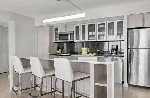 The fully equipped kitchen features granite countertops and full-size stainless steel appliances. This villa is complimented by home-like conveniences including plush bedding, washer/dryer and elegant decor. The villa also includes multiple flat-screen TVs with a wide selection of stations and streaming options like Netflix and YouTube. Wi-Fi is free.