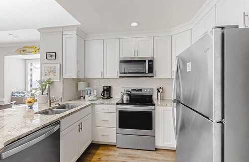 Pasa el día en una playa cercana, relájate en la piscina compartida o tómate algo en el porche o patio de este condominio de 106m². Para cambiar un poco, entra y disfruta de la conexión a Internet, de la televisión por satélite o cable y del reproductor de DVD.