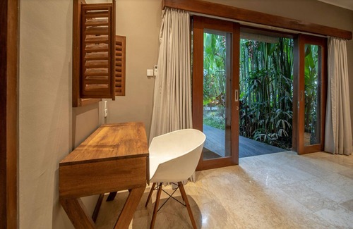 Esta nueva villa elegante ofrece alojamiento de lujo con una maravillosa fusión de Bali tradicional y contemporáneo. Todas las habitaciones tienen un espacio muy grande con una atención muy cuidada a los detalles y una gran combinación entre naturaleza y lujo. La piscina infinita tiene vista a la jungla, y una cubierta en el medio de la piscina ofrece un buen lugar para relajarse, tomar su desayuno por la mañana o disfrutar de una copa mientras contempla un atardecer épico. La zona de comedor y de estar al aire libre da al jardín y a la piscina. Es el lugar perfecto para descansar o reunirse con sus amigos y familiares y disfrutar de una comida casera juntos.