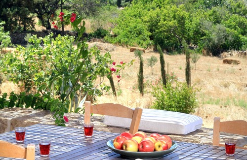 Se encuentra en Kampos, a solo 10 minutos a pie de la popular playa de Kampos. Está situado en el medio de los campos, y se distingue por su paz y tranquilidad.