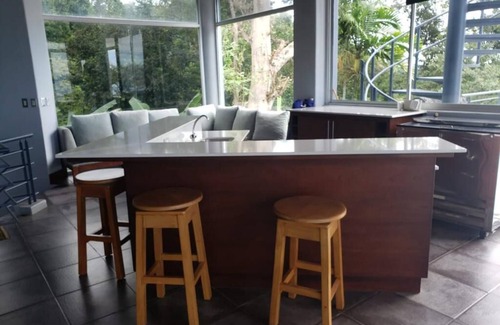 La casa es un refugio alejado de las vidas rápidas que vivimos. Las vistas al mar son infinitas. Los árboles verdes y la vida silvestre son hermosos. La gente es amigable y bien educada. La mayoría de los lugareños hablan un poco de inglés. El surf es divertido y no está lleno de gente. Nuestra casa está en un acantilado. Estamos a unos 7 minutos a pie de una playa de arena blanca llamada Playa Blanca. El camino de regreso desde la playa es muy empinado cuesta arriba. Nos dirigimos al estacionamiento de la playa y nos estacionamos al costado del camino. Está a dos minutos en coche. La casa está ubicada en un complejo muy seguro de Punta Leona. Dentro del complejo, hay 3 restaurantes, una pequeña tienda de conveniencia y otras actividades. Es necesario comprar una pulsera de resort para usar sus instalaciones. Estamos a unos 25 minutos de Jaco. Tenemos un jacuzzi pero solo se calienta.