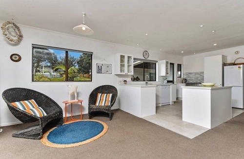 A menos de una hora en coche de Auckland se encuentra la hermosa zona de playa de Omaha. # 7 es una casa de tres dormitorios ubicada al otro lado de la calle desde el tercer tee del campo de golf de Omaha con vistas hasta la entrada de Whangateau.