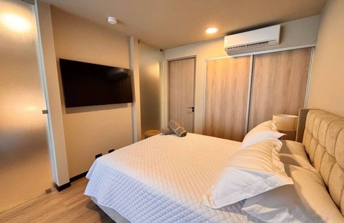 Este apartamento de 1 habitación ofrece el equilibrio perfecto entre amplitud y confort. Cuenta con una cama queen, sala con sofá cama, comedor y cocina completamente equipada, brindándote todo lo necesario para sentirte como en casa. Ideal para parejas, viajeros de negocios o estancias prolongadas, con acceso a todas las amenidades del condominio.