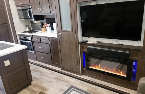 Las habitaciones de One bedroom with loft near Disney disponen de aire acondicionado, chimenea y cafetera y tetera. Las habitaciones disponen de patio. El mobiliario se compone de mesa de comedor y isla de cocina. La cocina está dotada de placa de cocina y microondas. Los baños están equipados con ducha y secador de pelo.