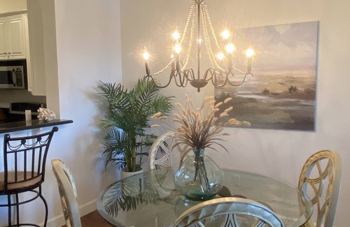 Nuestro condominio de 3 dormitorios para 8 personas cómodamente. Todas las camas tienen colchones muy lujosos para una buena noche de descanso. La cocina gourmet está bien equipada con electrodomésticos de acero inoxidable, encimeras de granito, gabinetes de cerezo, utensilios de cocina, licuadora, cafetera, tostadora, utensilios y platos. Todo lo que necesitará para preparar una deliciosa comida con amigos y familiares. El plano de planta abierto permite que todos estén juntos sin estar abarrotados, mientras que las habitaciones zonales brindan la privacidad que tanto necesitan. Las grandes puertas corredizas de vidrio en la suite principal y la sala de estar ofrecen hermosas vistas de la puesta de sol, el lago y el campo de golf. El baño principal tiene una ducha acristalada y bañera de jardín. Hay muchas toallas y toallas de playa, para su comodidad. También hay varios libros, películas y juegos para entretener a todos.