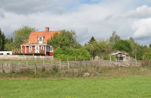 Beautiful fisherman's house "Örnshult". 7 km from the centre of Ankarsrum, 30 km from the centre of Västervik, 200 m from the lake, in a cul-de-sac, in the countryside. Private: natural state property 3'000 m2 (fenced) with meadow. Bathing jetty. Rowing boat, parking (for 2 cars) on the premises. Shop 7 km, supermarket 35 km, railway station "Västervik" 29 km, ferry "Helsingborg" 345 km, sandy beach "Ankarsrum" 7 km, indoor swimming pool 35 km, lake Skinnsjön. Fishing possibilities 280 m. Please note: private mooring.