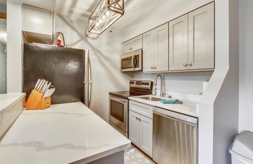 La cocina está equipada con frigorífico y lavavajillas, además de cafetera y tetera, microondas y utensilios de cocina. Conéctate al wifi, o relájate frente a la televisión por cable o satélite. Y no tendrás que llevarte ropa de más, porque podrás aprovechar la lavadora y la secadora. Otras comodidades de este alojamiento de 2 dormitorios y 1 baño incluyen una chimenea, ropa de cama y una tabla de planchar.