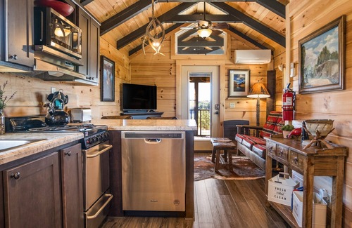 For outdoor enthusiasts, the location is hard to beat—world-class skiing, hiking, and mountain biking are just minutes away. After exploring, dine al fresco at the picnic table or sip cocktails in the Adirondack chairs while soaking in the sweeping views of the mesa below.